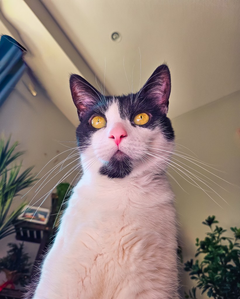 Capturing the whimsical adventures and emotions of a tuxedo cat.
